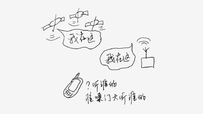那么为什么GPS接收机能够被欺骗?GPS卫星通过不断的广播信号,告诉接收机,自己在什么位置。这是一个单向的广播信号,而且经过了太空到地面这么远的传播,信号已经变得非常非常弱。此时,如果有一个GPS模拟器,在接收机旁边,假装成卫星,那么这个模拟器的信号很容易盖过真正的GPS信号。就像下面这张图的情况,接收机只能听到那个嗓门大的。