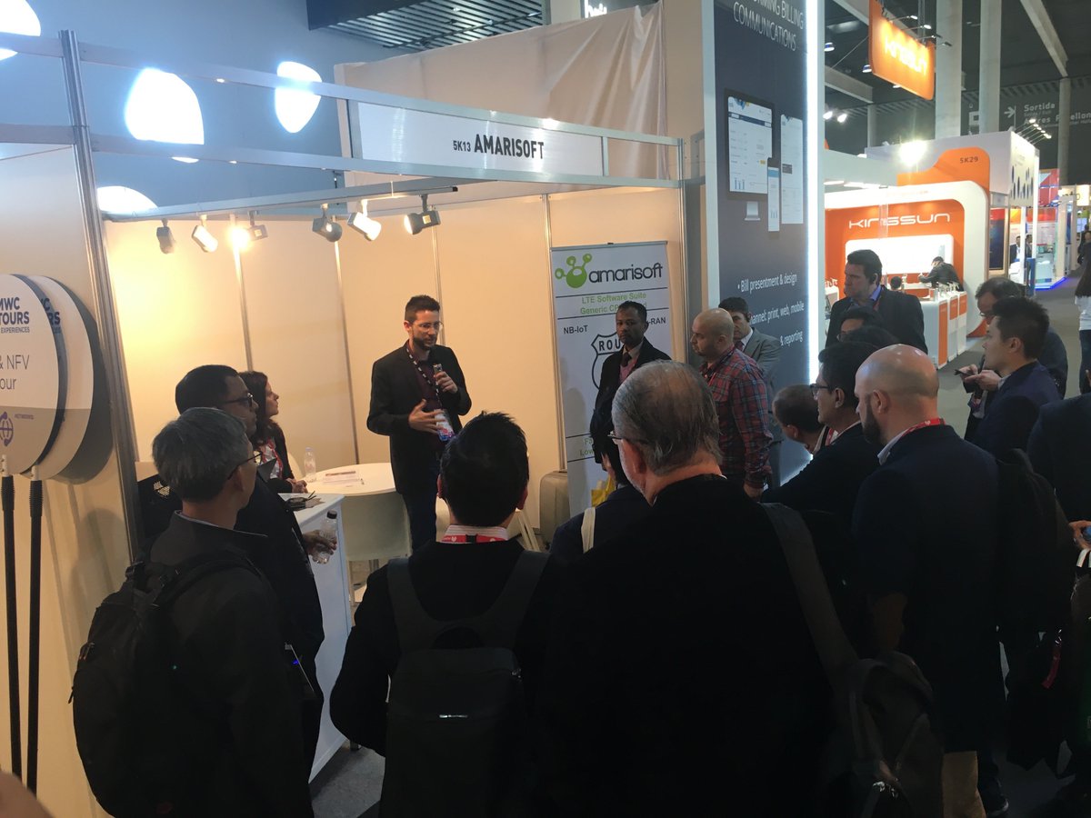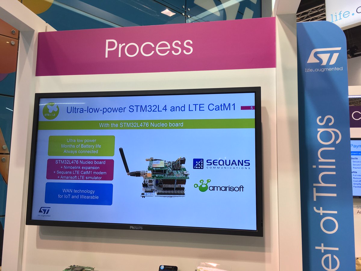 这个展台是STMicroelectronics展示LTE CatM1模块,上面使用的是Sequans的芯片,对接Amarisoft的基站。